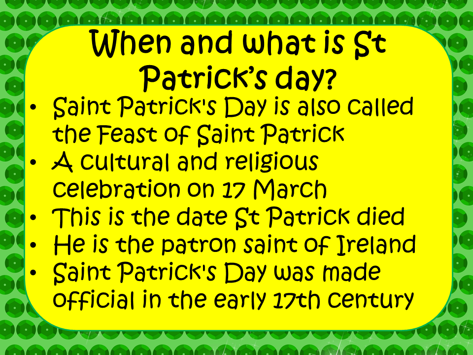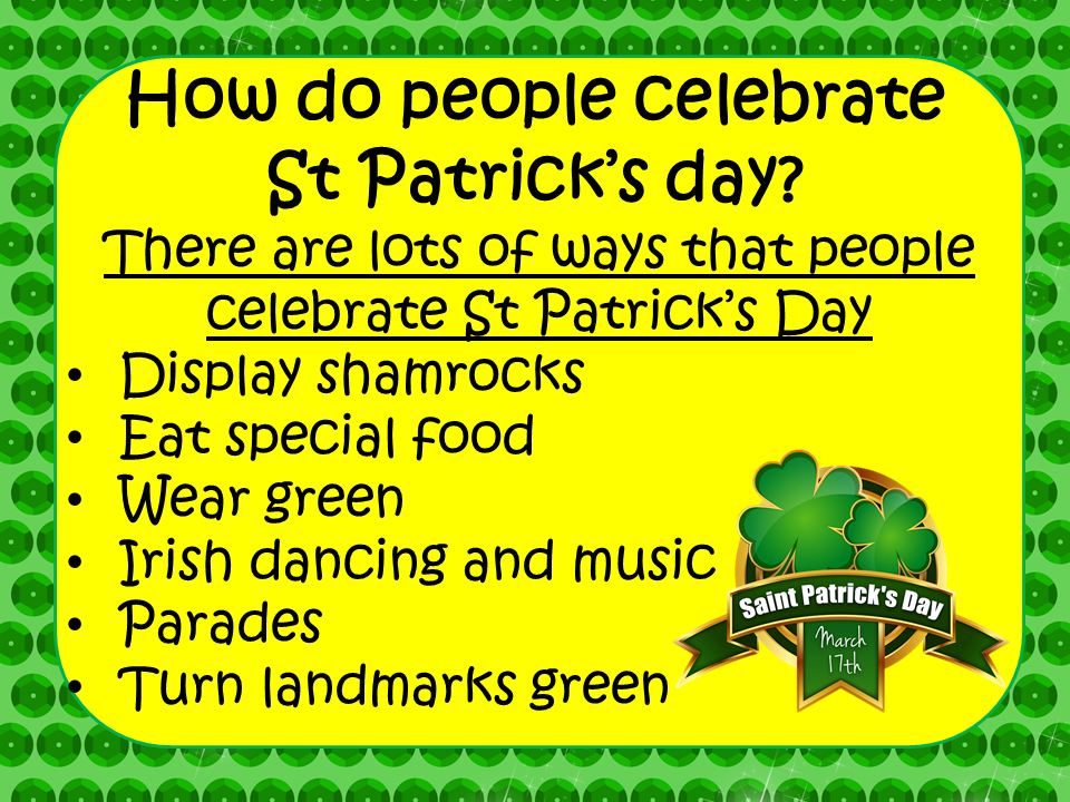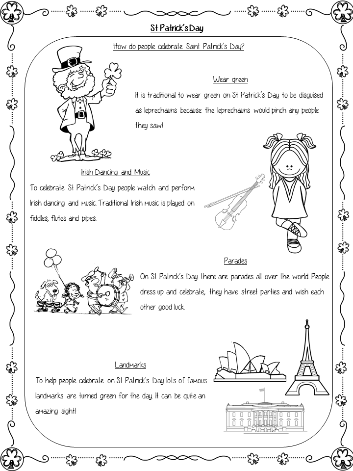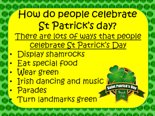 Saint Patrick's day is such a fun celebration. There is a real focus on having fun and wanting the best and luck for others, which to me seems like the best reason to celebrate! With this resource I tried to cover as much as I could without being over the top. There is information on the Saint himself and his day, I've explored the ways that people celebrate around the world.
