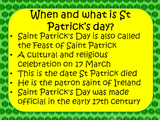 Saint Patrick's day is such a fun celebration. There is a real focus on having fun and wanting the best and luck for others, which to me seems like the best reason to celebrate! With this resource I tried to cover as much as I could without being over the top. There is information on the Saint himself and his day, I've explored the ways that people celebrate around the world.